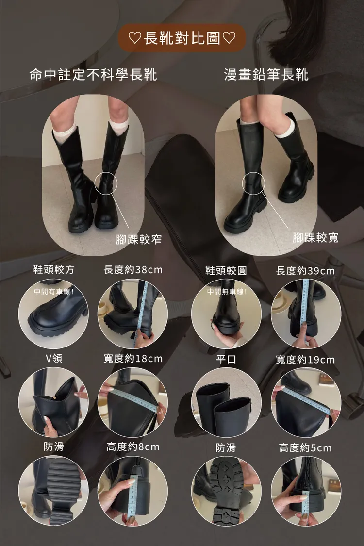 尺寸(cm) | 前跟高 | 後跟高 | 筒圍 |