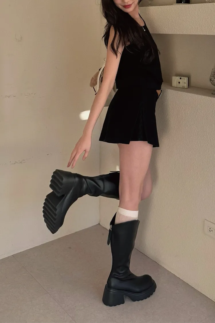 靴筒做了V領設計、視覺直接把腿拉得更長又更顯瘦,修飾效果超強.ᐟ.ᐟ