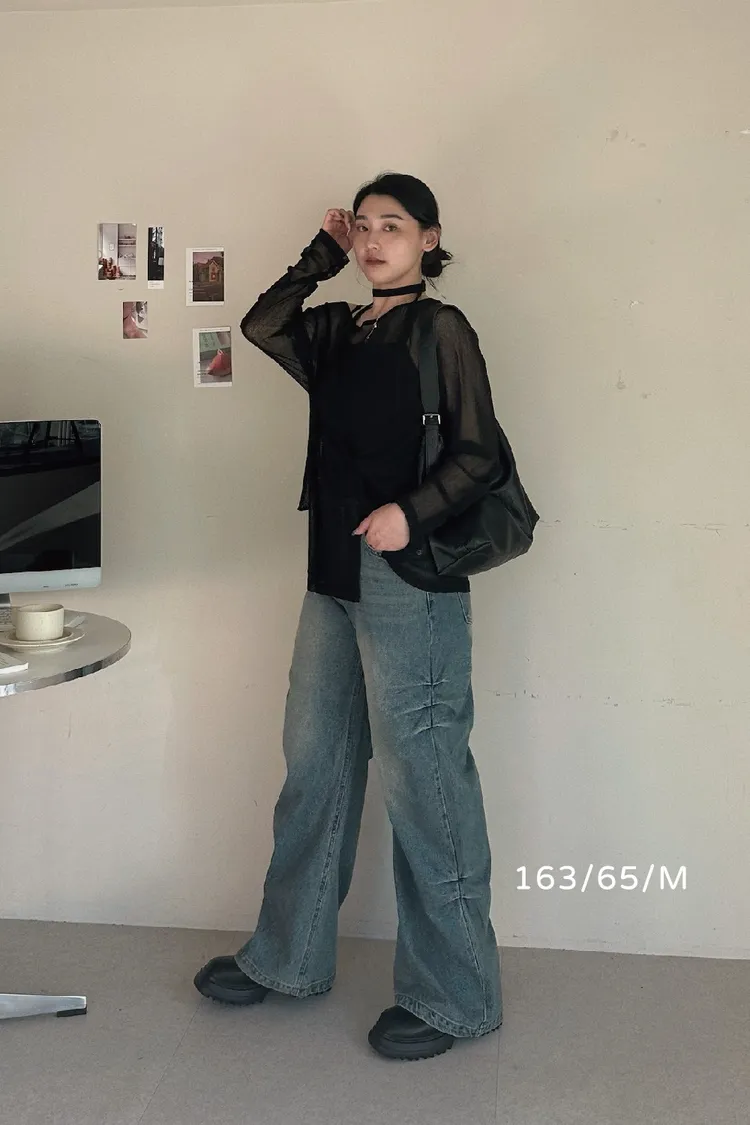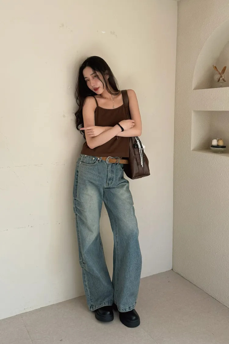 布料是挺挺的牛仔材質很顯俐落腿型 .ᐟ.ᐟ