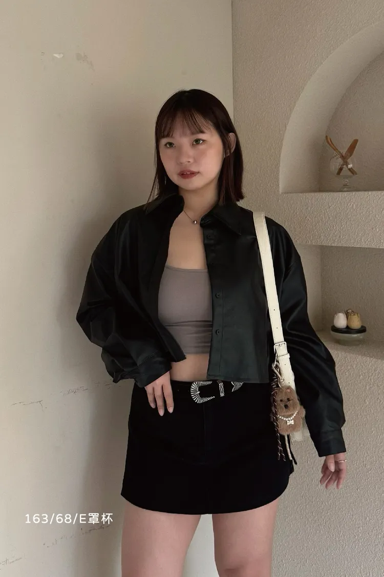 落肩+短版設計,肩膀線條立刻挺起來 (՞ ܸ. .ܸ՞)︎♡