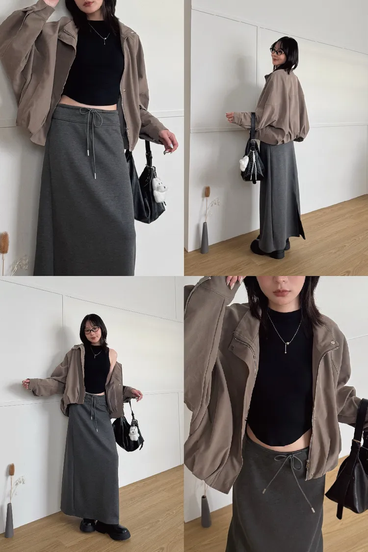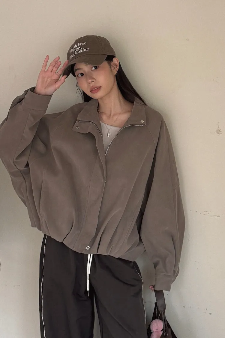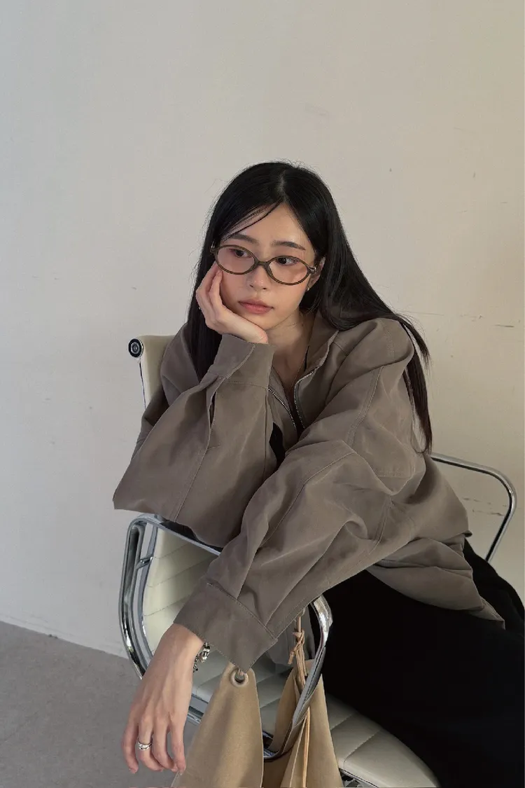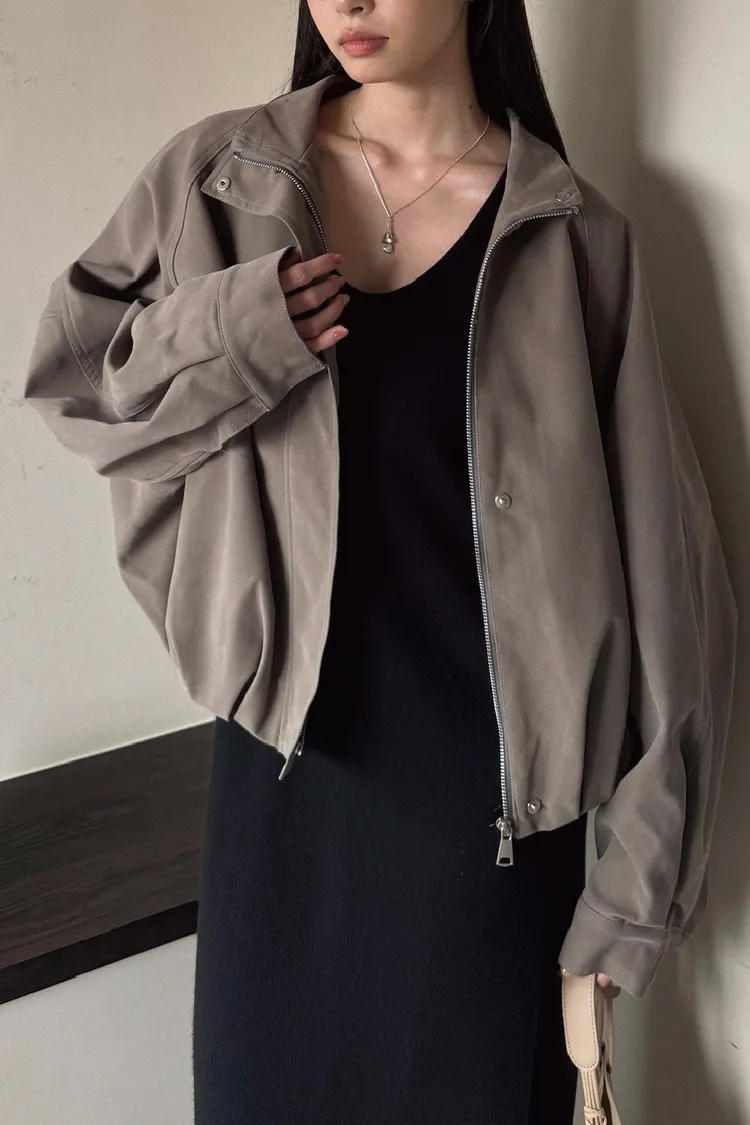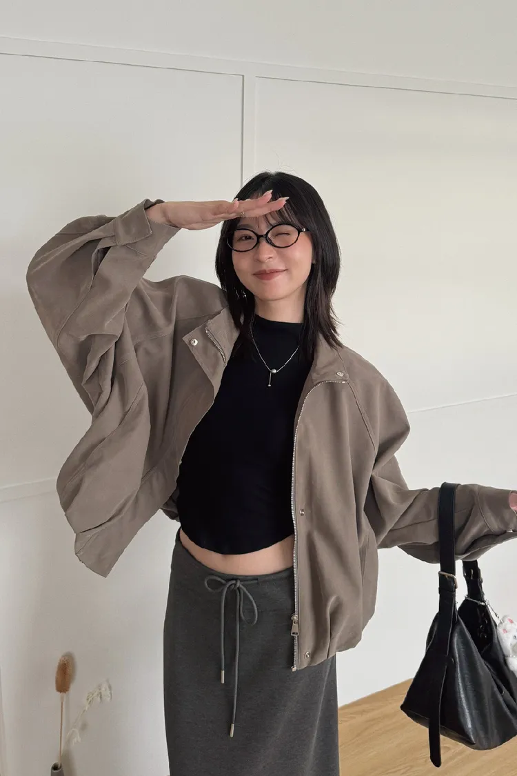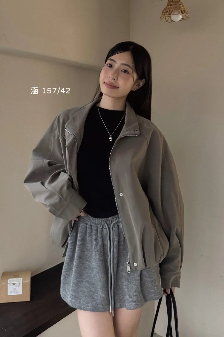 上有翻領設計、下有縮口抓皺