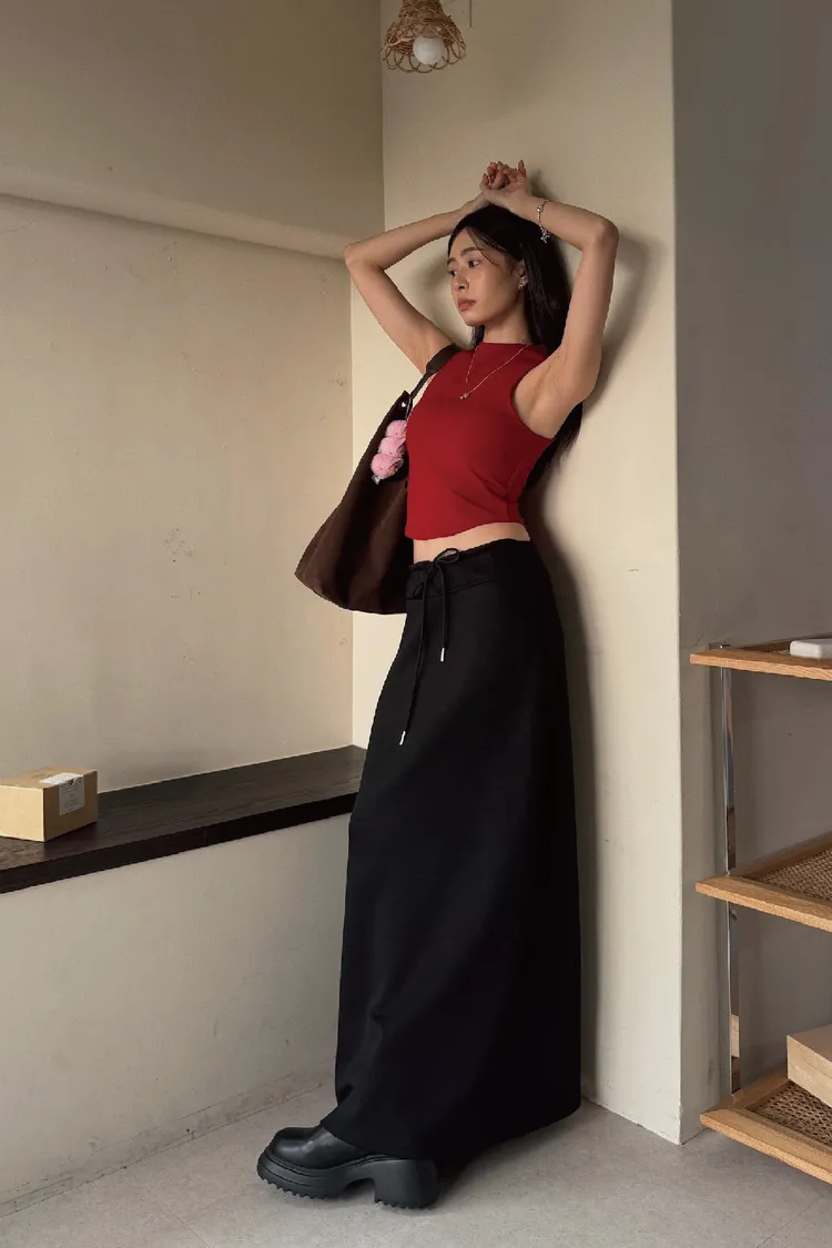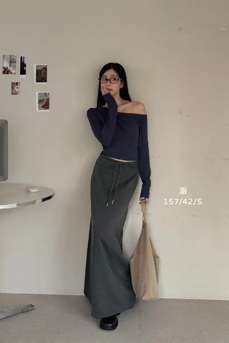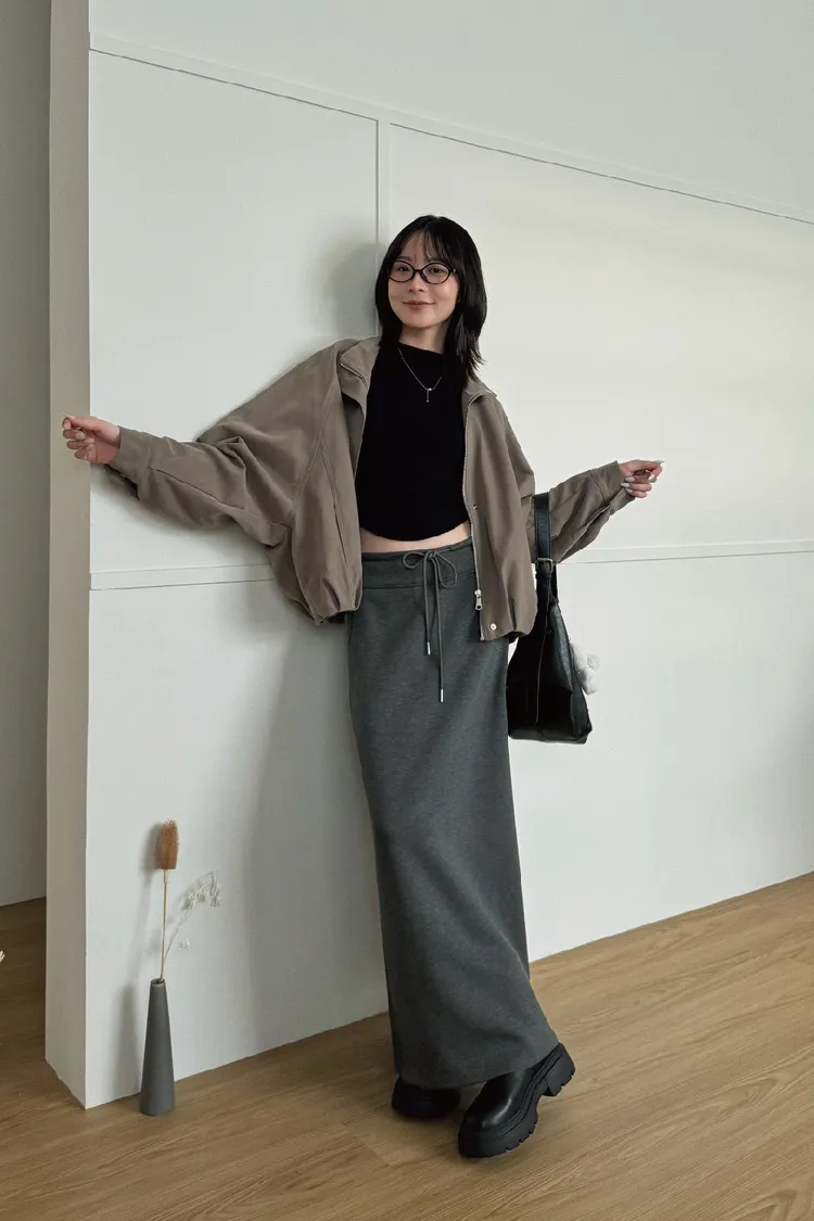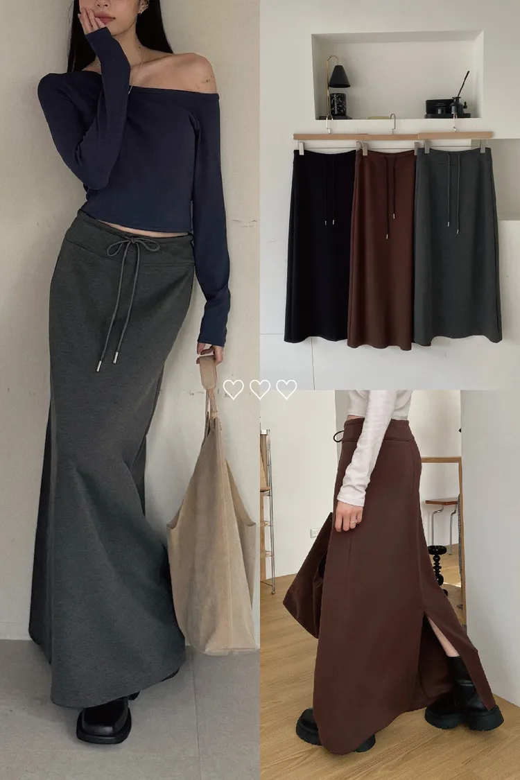 腰頭抽繩+裙襬後開衩..美膩又好穿。ॱ ˚ ♡