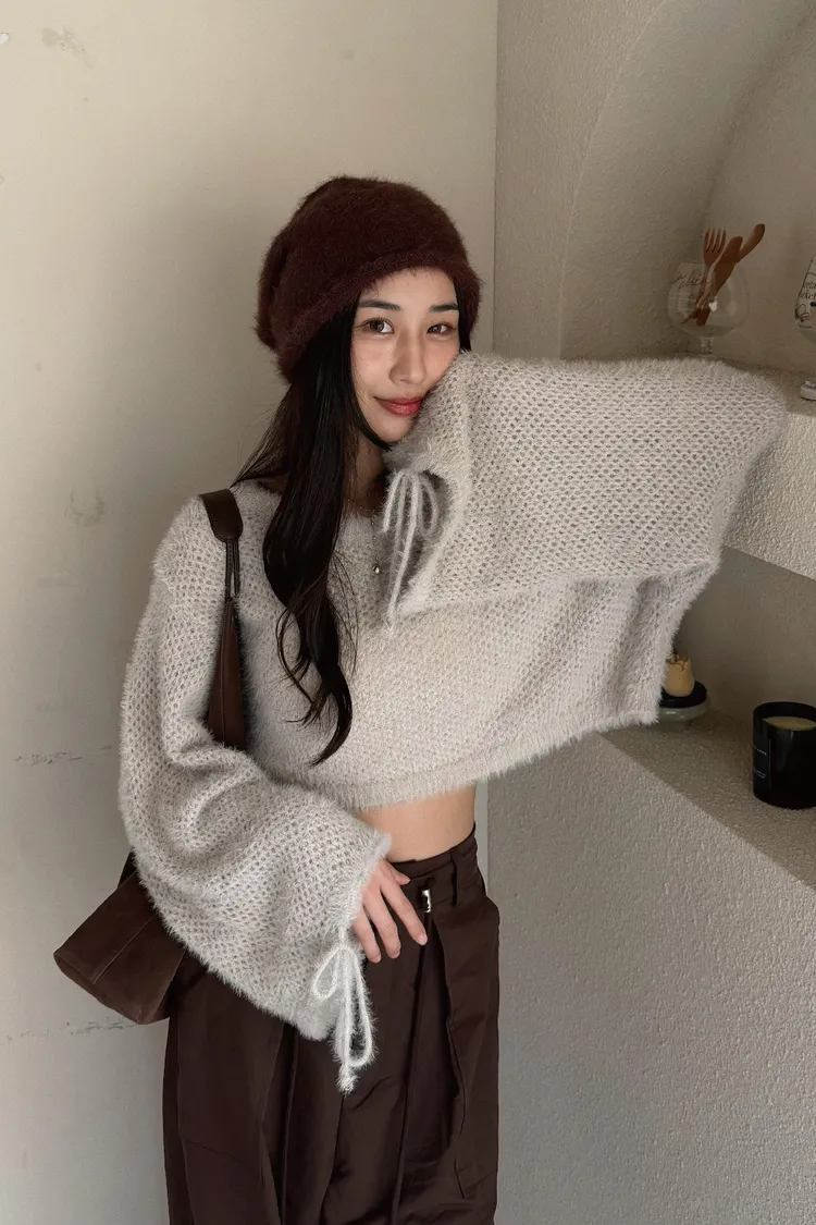 手袖不只長度萌萌的,還有做抽繩綁帶ʚ♡ɞ不無聊還可以自行調節呦~~
