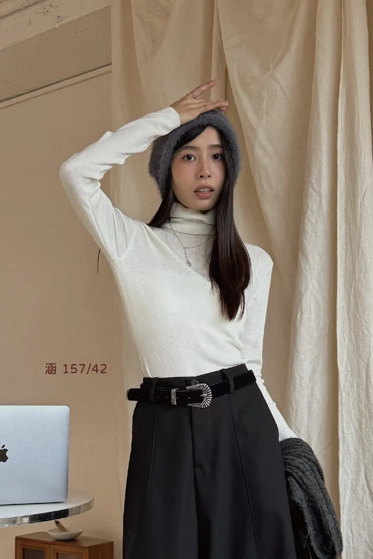 這件看似是一件簡單素面的高領毛衣