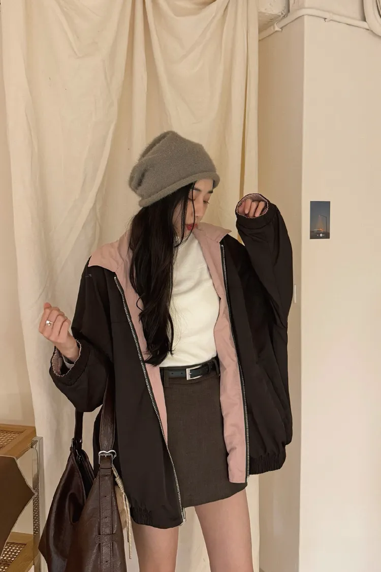 ✨此款外套為兩面穿,拉鍊拉法建議要將拉鍊布袋拉直並連拉頭一起推會比較好拉呦~🫶🏻