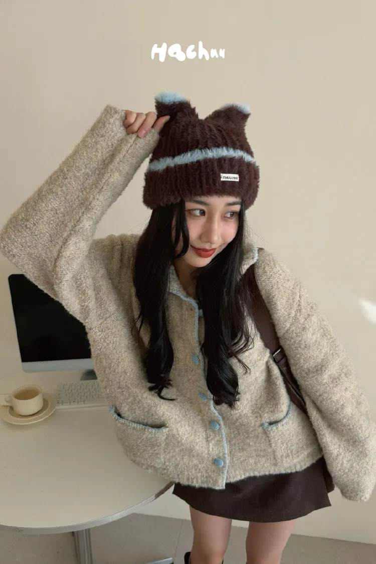 一戴就是貓貓本貓~~ฅ^•ω•^ฅ超級軟fufu的毛+超Q的耳朵.ᐟ.ᐟ誰會不喜歡啦~~~ヾ( ́ε`ヾ)戴起來超保暖還可以幫穿搭增加層次🐈⬛重點是.ᐟ.ᐟ彈性是很~~大的那種,戴上不勒頭部呦~~微微特別der線條但又不會太難駕馭~~絕對是需要多帶的單品啦💓🤲🏻