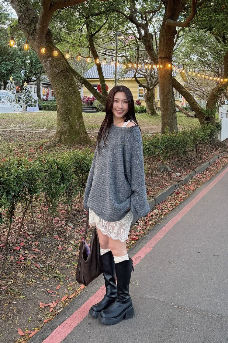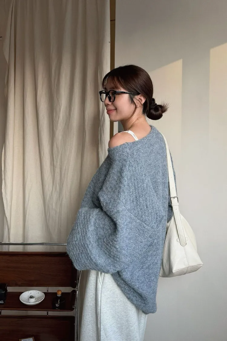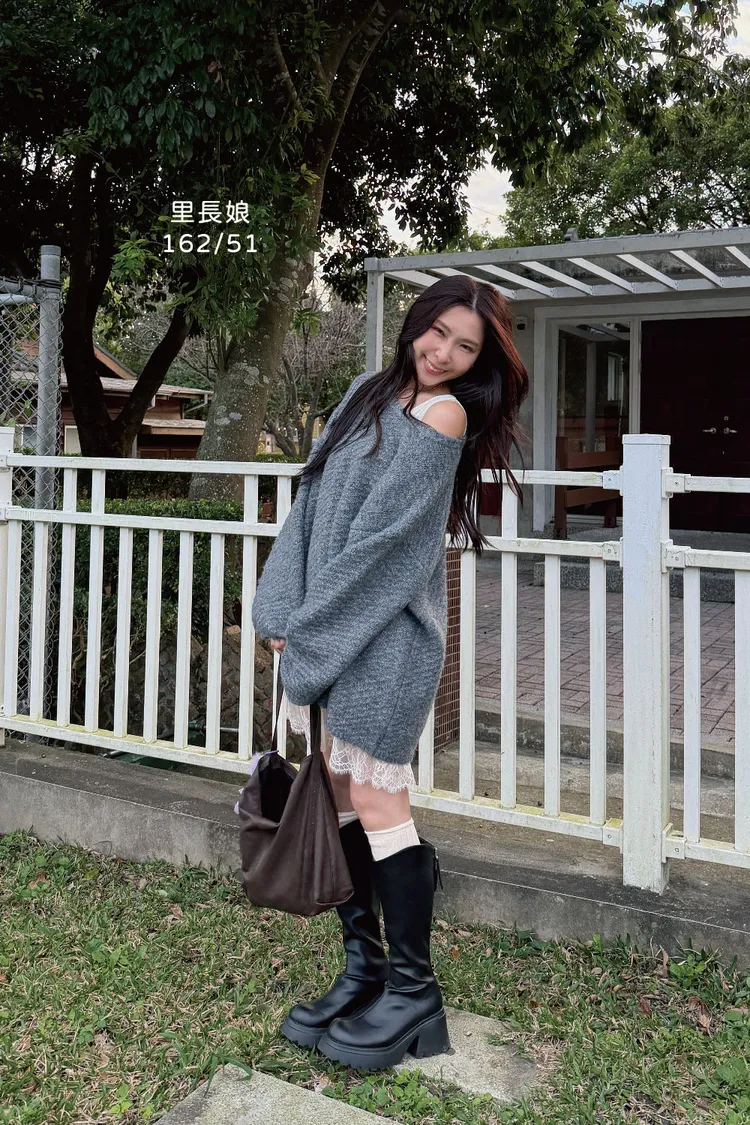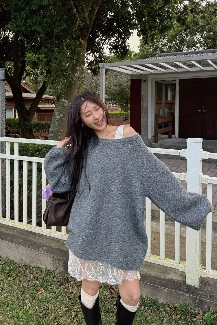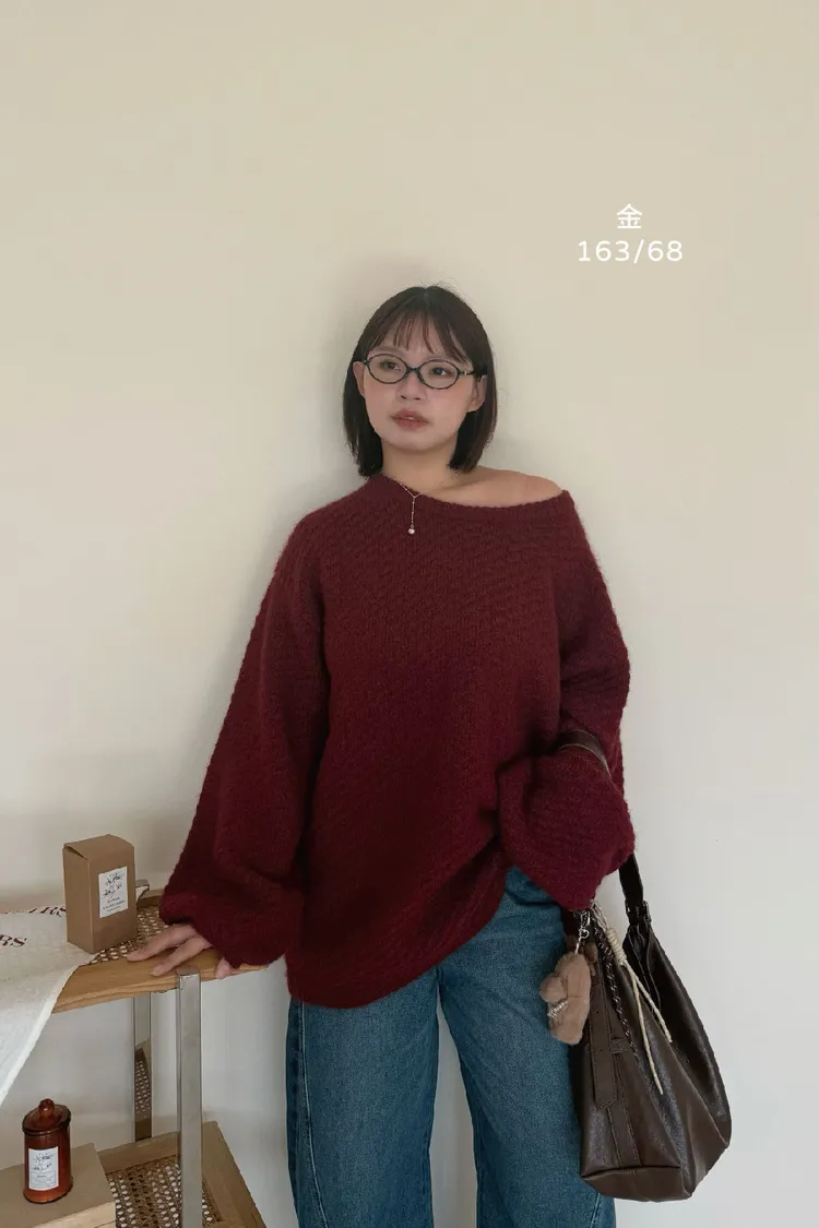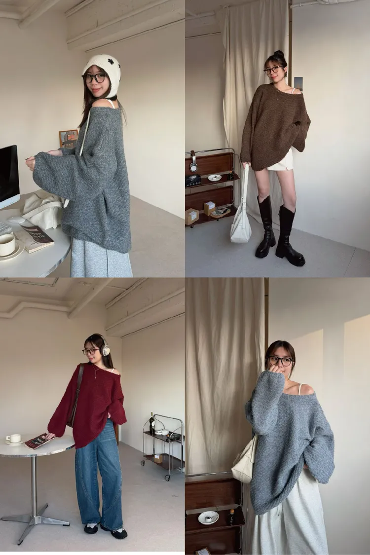 圓領設計~想要更有氛圍感的話可以拉成斜肩~~~