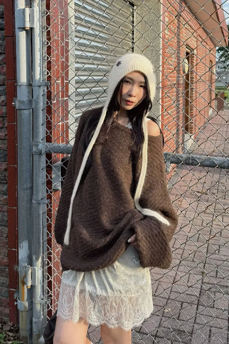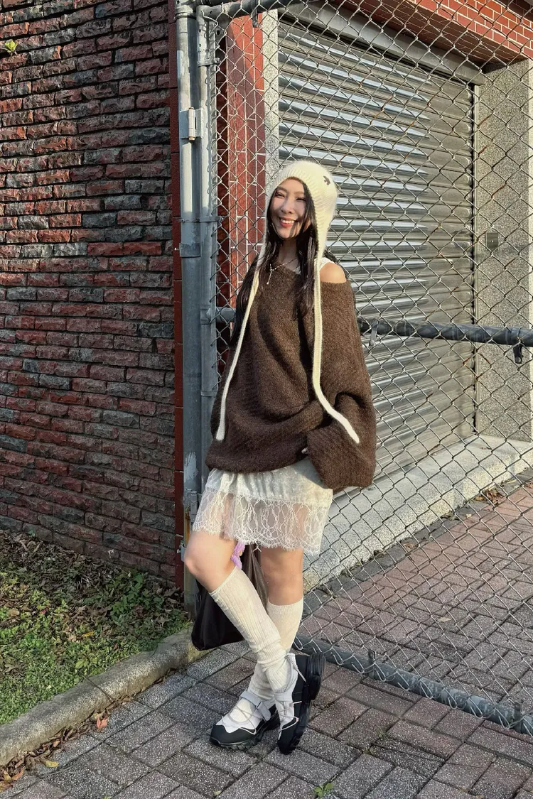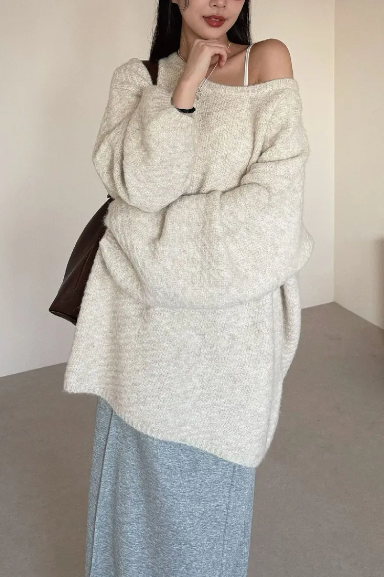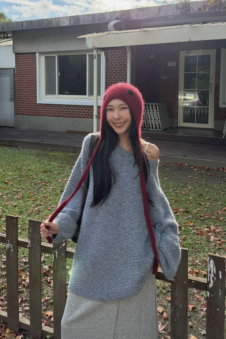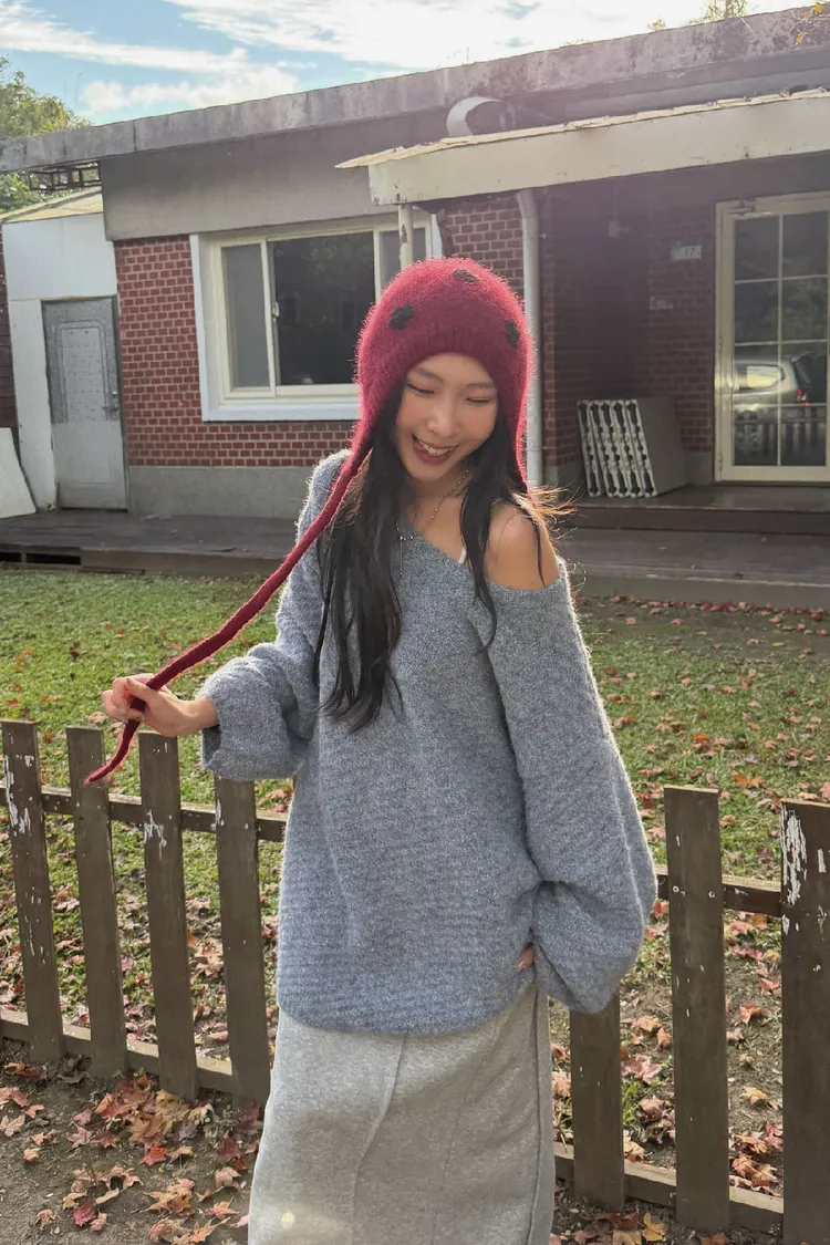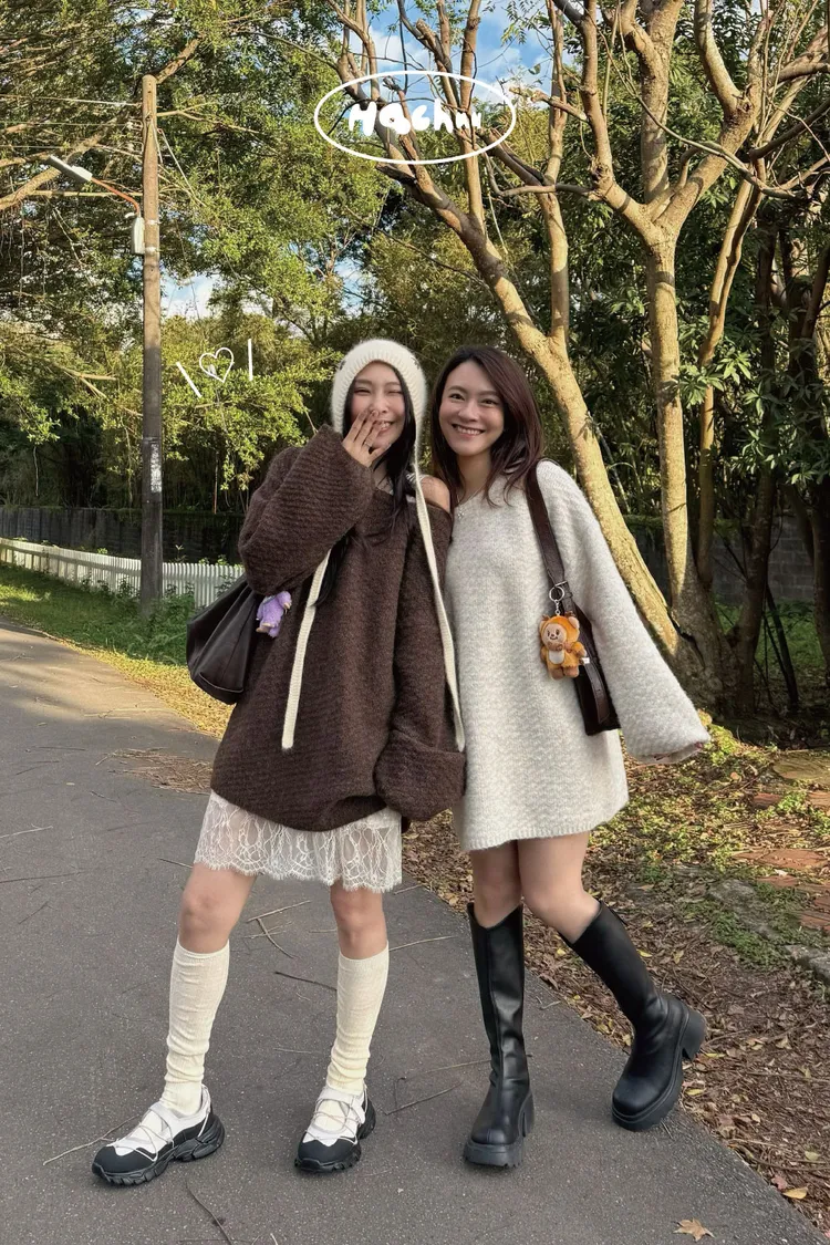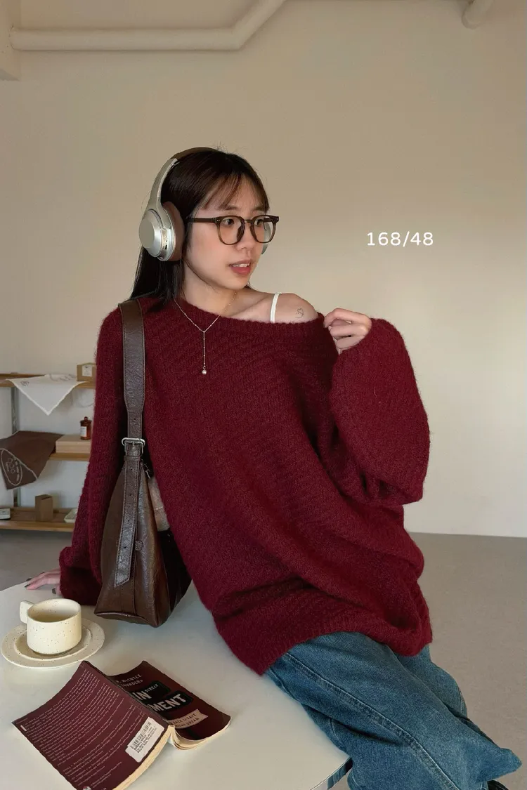 圓領設計~想要更有氛圍感的話可以拉成斜肩~~~