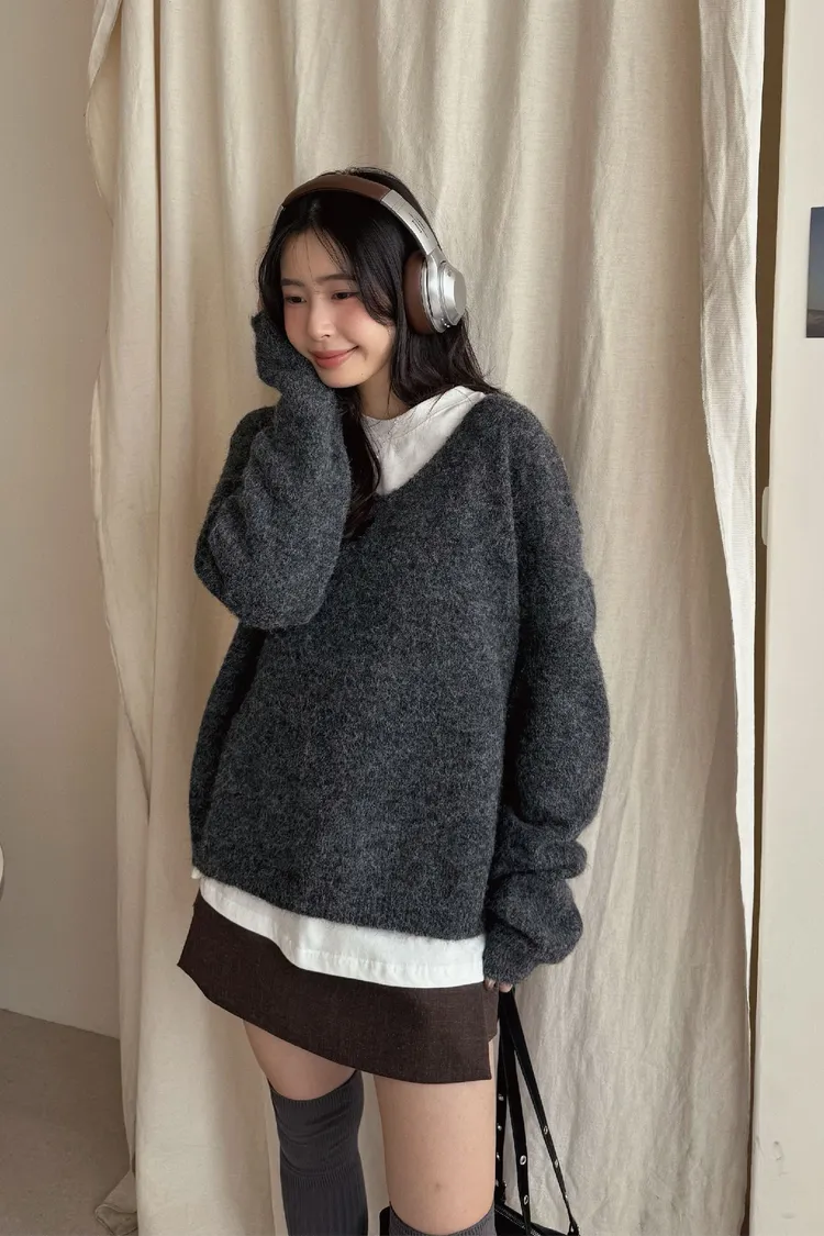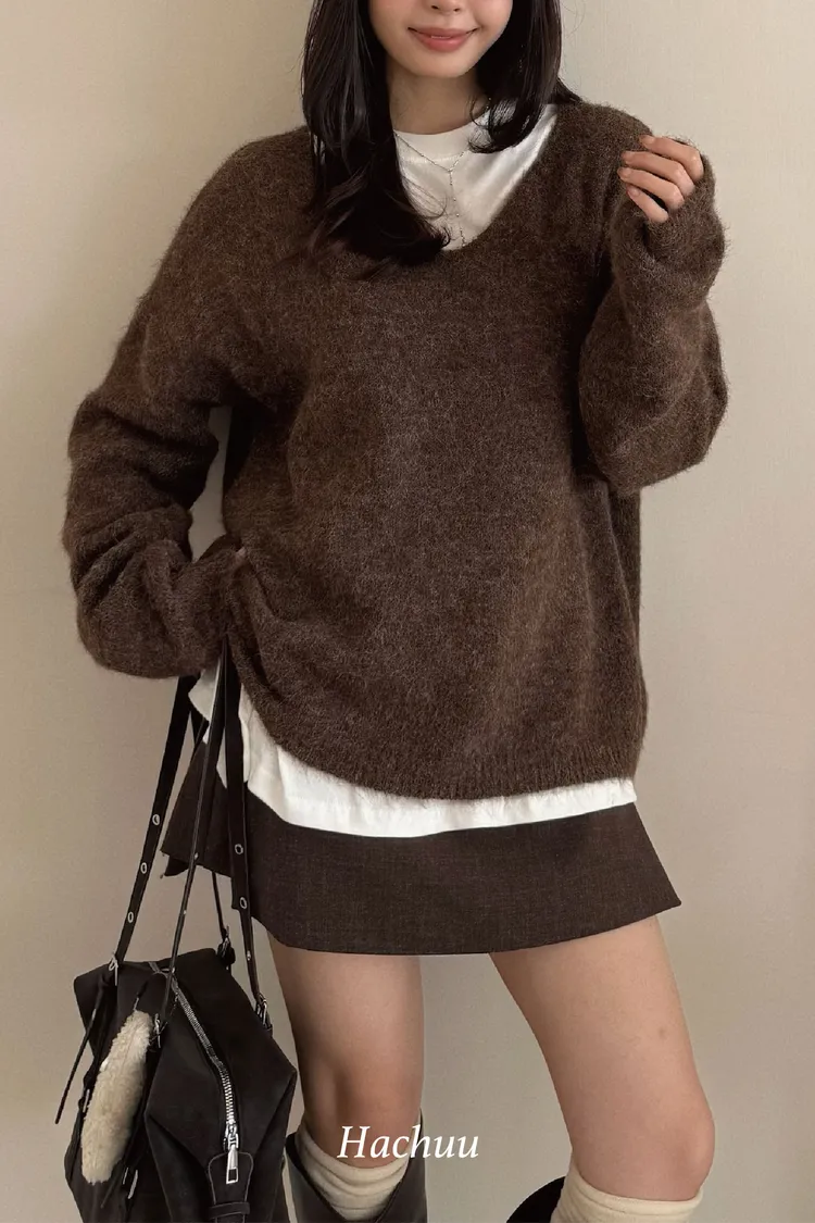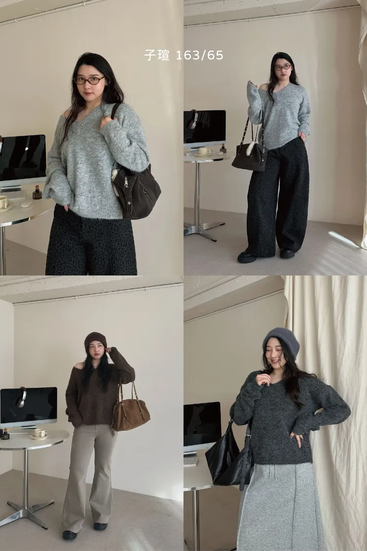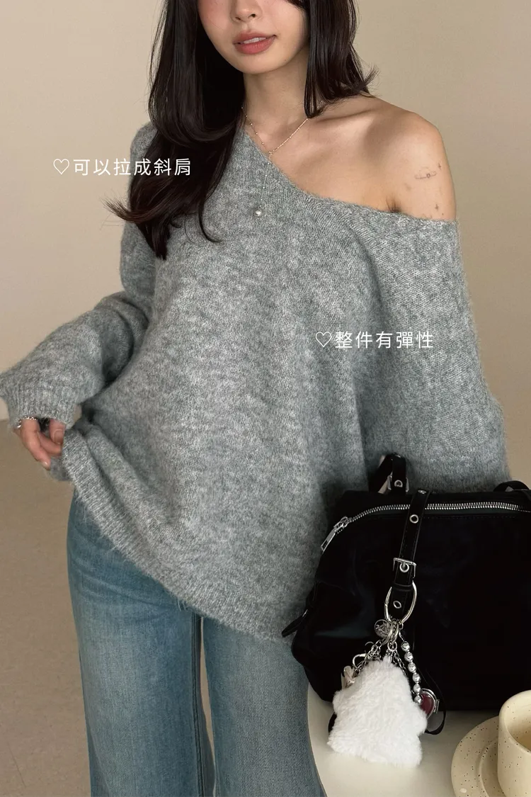 大V領的設計讓臉型小了一半!領口想要拉成斜肩也會很漂釀呦🙂↕️