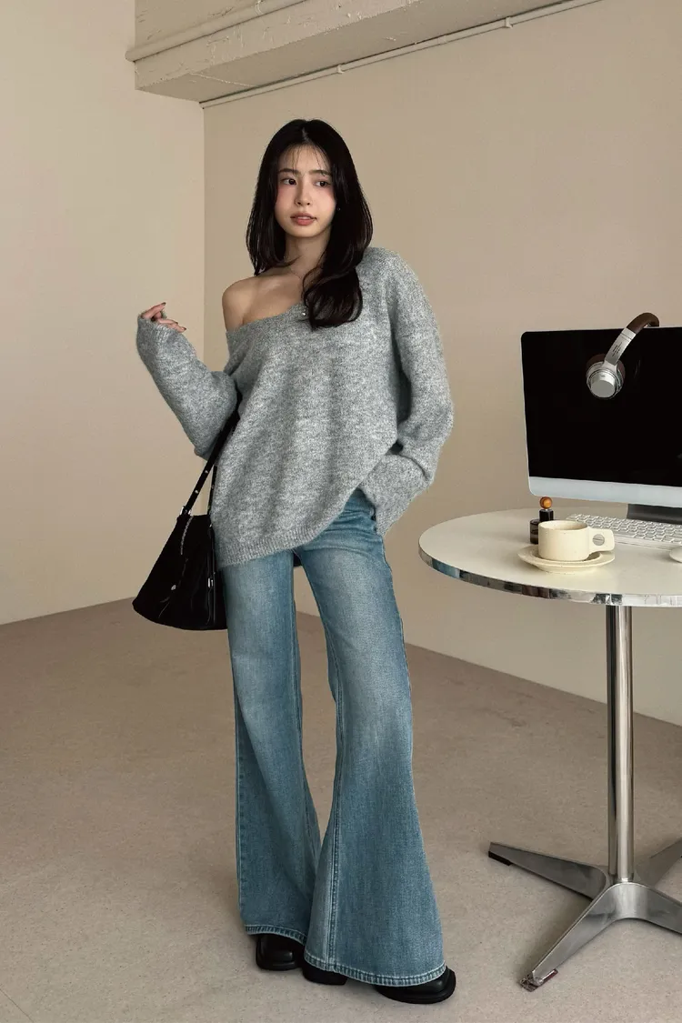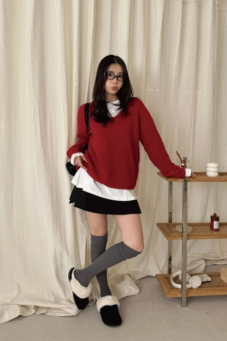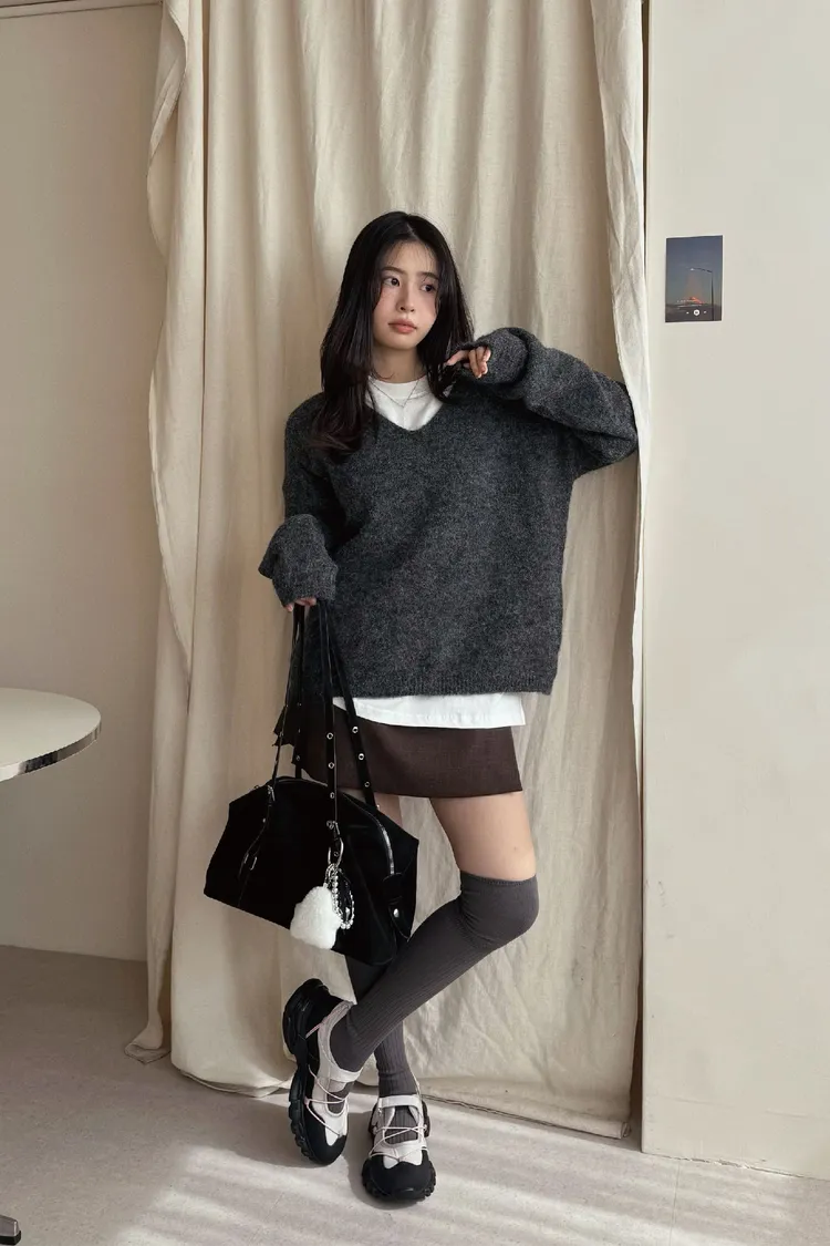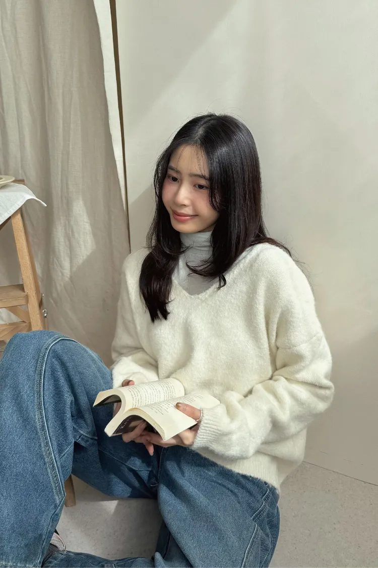 大V領的設計讓臉型小了一半!領口想要拉成斜肩也會很漂釀呦🙂↕️